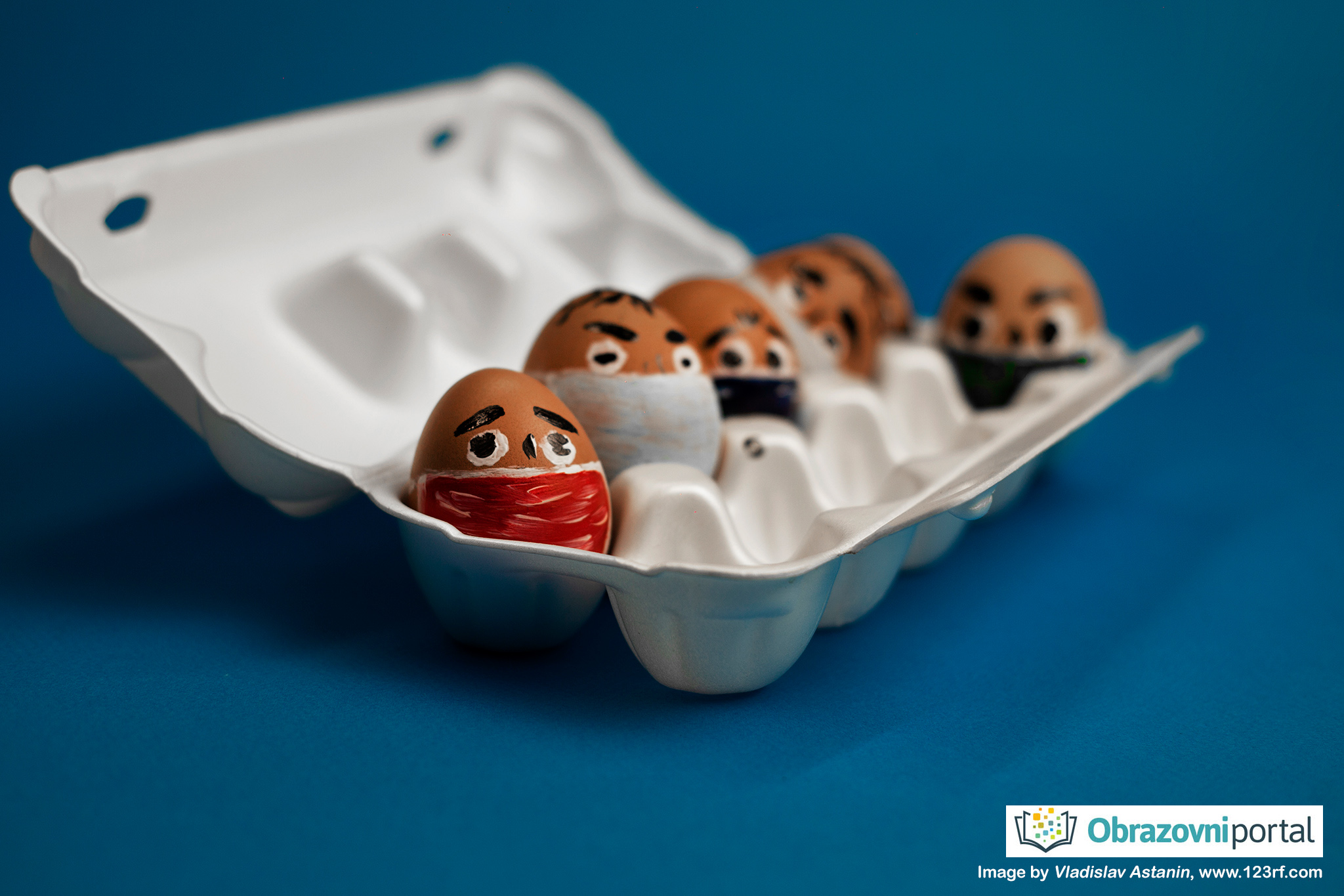 Ulazim u školu. Mjere mi temperaturu, dezinfikujem cipele, ruke. Masku namještam dezinfikovanim rukama uz nos. Provjeravam da negdje ne dihtuje. Vruće mi je. Penjem se do kabineta. Klupe su razmaknute. Ulaze učinici i sjedaju po protokolu jedni od drugih udaljeni na 1,5 m. Na licima imaju maske. Samo im oči vidim. Ne pričaju puno. Razumijem ih, nemoguće je pričati sa maskom preko usta. Ali ja moram. Pričam šest skraćenih časova sa malim odmorima od 5 minuta na kojima idem da operem ruke toplom vodom i sapunom i da se dezinfikujem, popijem malo vode. Skidam masku, pijem vodu, vraćam masku, idem na sljedeći čas.